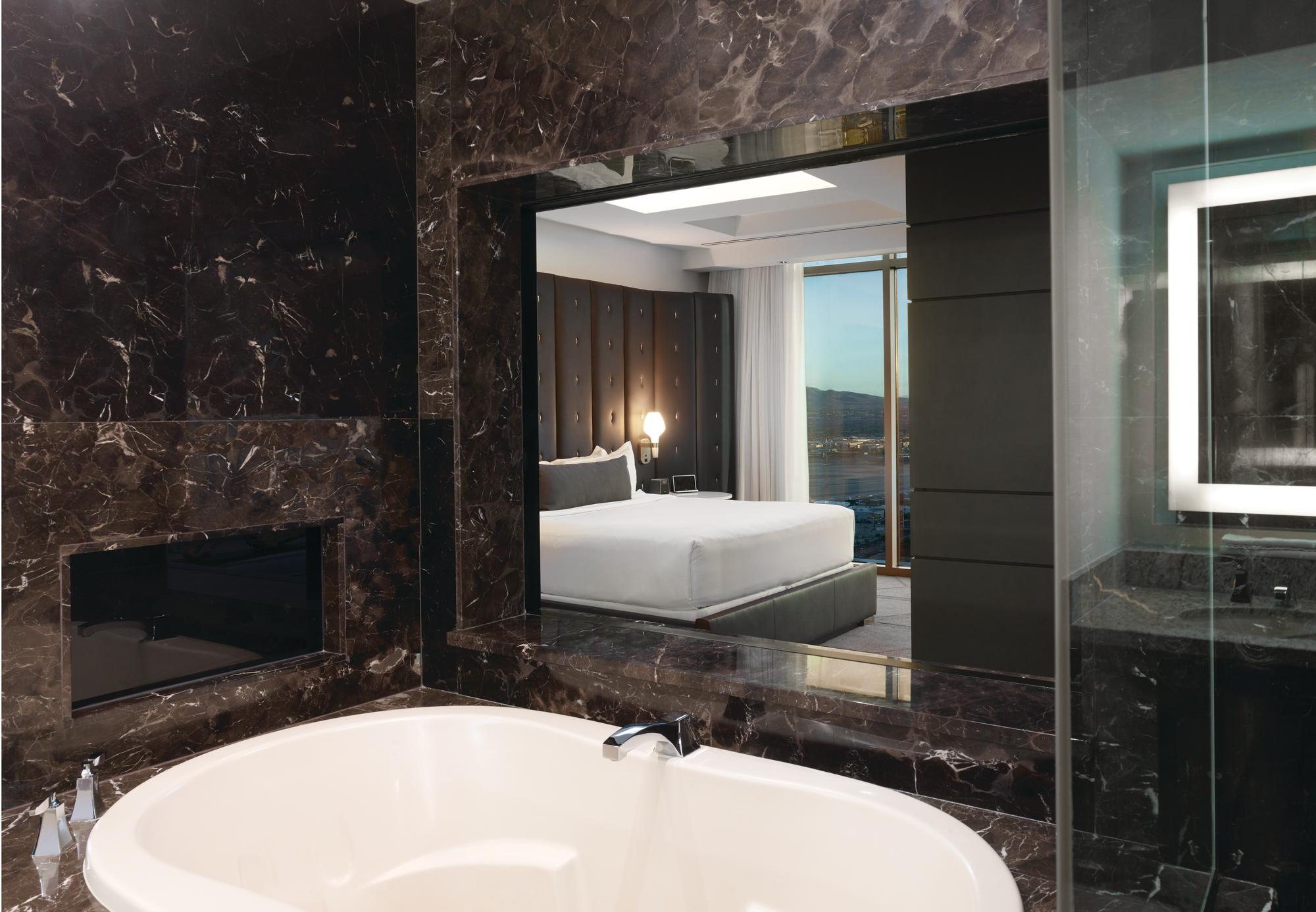 - Floor-to-Ceiling windows with strip, beach, or mountain views