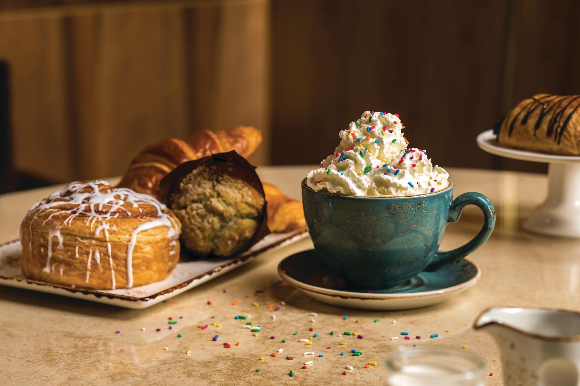 Cupcake Syrup, Espresso, Milk, Whipped Cream, Sprinkles